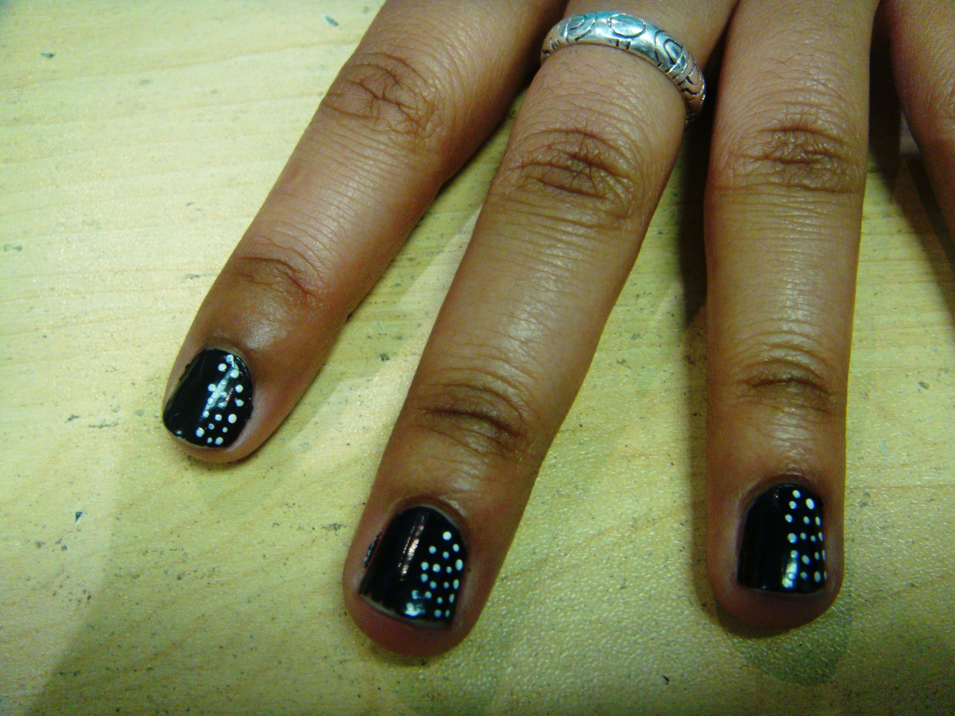 Anyhoo, while in store, one of the sales assistants, Carmen, was sporting a mani caught my eye. Check it out: