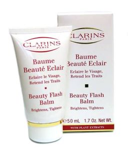 After re-hydrating my skin with a little L’Oreal Hydrafresh creme gel. (They’ve discontinued it in this country, Lord know’s why, so I always pick it up in duty free…), I smoothed on a bit of Clarins Eye Contour Gel around my eyes – it’s my absolute favourite depuffer. I then slapped on another of my staples, Clarins Beauty Flash Balm.