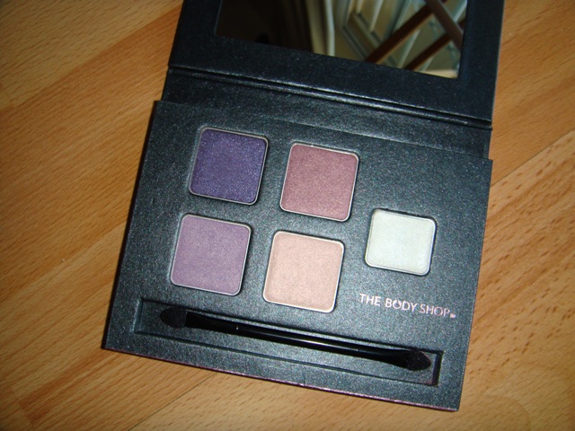 Two top shades are Violet Sky and Damson Velvet. Bottom shades are Lilac Mist and Pink Champagne. The hilghlighter is called Pearl.