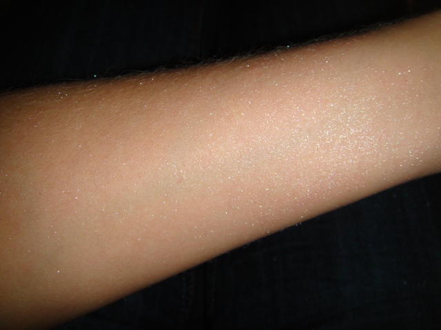 I spritzed it on my arm to show you what it looks like and was a bit heavy handed as I was scared it wouldn’t show up in the pic, but you still see that it’s class, not crass. I look forward to misting it in my hair for the office Christmas party.