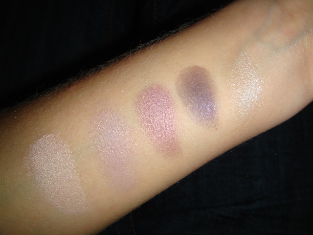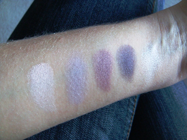 With flash. Shades from L to R: Pink Champagne, Lilac Mist, Velvet Damson, Violet Sky and Pearl.