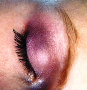 Riiight, so I’ve whipped up a little ‘Twilight’ eye shadow look for you. I hope gratefulness oozes from your every pore – using a hi-def camera on Ultra Zoom to get up close and personal with you’re oogies when you’re tapping at 30’s door isn’t as fun as I thought it would be. 😉