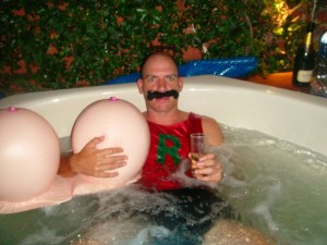My darling boy was ‘Ronaldo the Strongman’, as he’s costume featured a giant ‘R’. However, he was christened ‘Retard Boy’ within seconds of his arrival. He proceeded to get hideously dronk and spent much of the party in the hot tub, eating ice cream with a string of gorgeous gay boys.