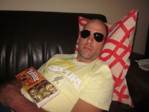 1. ha ha ha!! Jassas Mike you Nobb!!! Leigh, you should have kicked his toffee ass off the couch and told him that he looked like a Top Gun Noddy!!!!