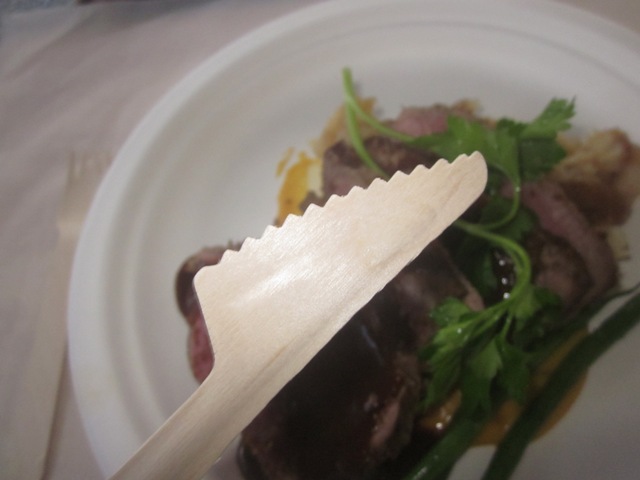 After a big of schmingling and mingling, we all sat down to enjoy a yummy three-course organic meal. My organic beef fillet main was so tender that I could cut it with the cutesy little biodigradible knife and fork it was served with.