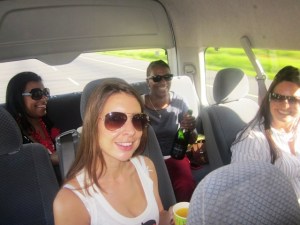 Last weekend, myself and a bunch of girlfriends decided it would be a good idea to rent a shuttle bus to get us to and from this year’s Bastille Festival in Franschhoek. It made perfect sense as we planned to get jiggy with an array of champers, yet make it home alive. Still… I’d like to point out that, at one point, I did offer to be the Designated Dora, but my friends are all of the impression that, whether sobre or dronk, I still drive like kak… (and KP takes great joy in refering to my beloved li’l Kia as ‘the white cake tin o’ death…’) Nice girls, nice…