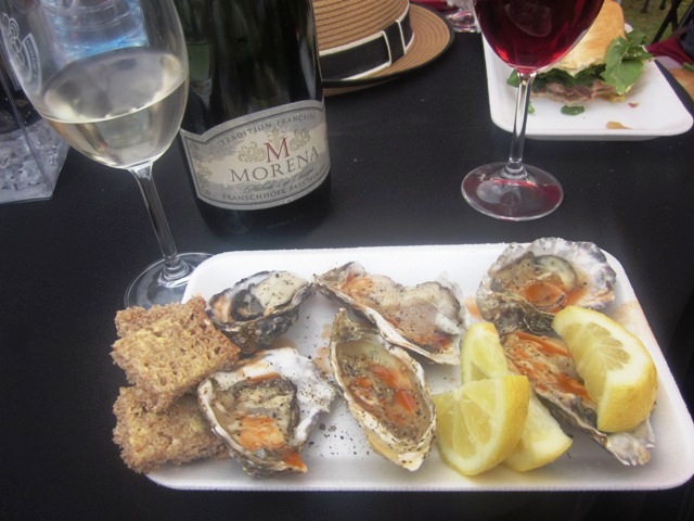 Once at the festival, we parked off at a table just outside the main tent and proceeded to drink our way through several different wines and champagnes that I now can’t remember the names of. We also got stuffed on huge wheels of camembert and brie as well as oysters that were eight bucks a pop.