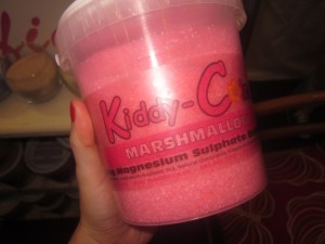 They had ‘grown-up’ scented salts too in a range they call Mai-Thaim, but I opted for the kiddie-orientated ‘marshmallow’. Just like the adult versions, it promises to alleviate sore muscles as well as other health dramz like insomnia, fatigue and migraines. (Sounds like it was made for me!) Also, I’ve just checked the brochure and see that its availabe in a chocolate scent too. Drat! Why didn’t I see that at the stall?!