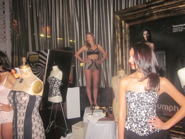Now before I get sidetracked, let me tell you about the bash… Every year Cosmo puts out a lingerie edition that’s packed with zexy modelle like Tracy McGregor and Lieschen Botes (the one friend I won’t introduce to my boyfriend for obvious reasons…) To celebrate, they hold a party that includes a fashion show of all the undie brands featured in the mag. Think La Senza, Woolies’ Temptations, etc, etc. This year, some of these brands had little ‘installations’ as well, like Triumph that made use of live ‘dummies’:
