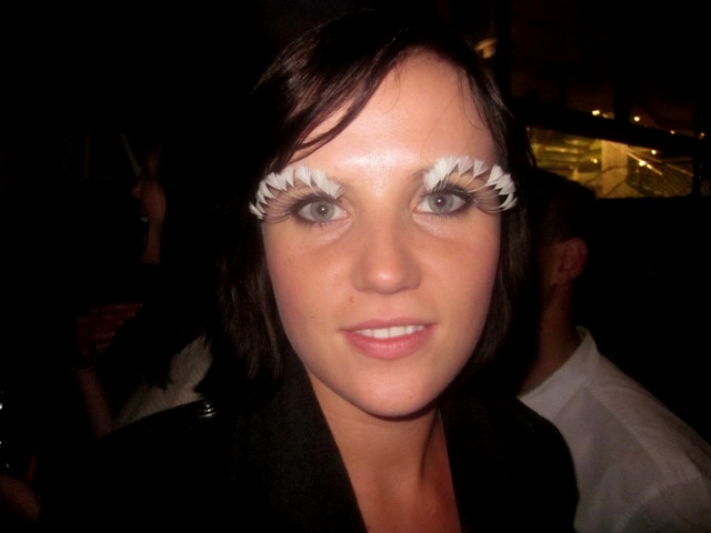 Ooh! And check out Cosmo’s PR gal Lize the Unicorn’s gorgeous white feathery falsies. (FYI, the party’s dress code was ‘sexy with a touch of white’…)