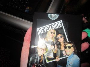 Anyway, let me tell you about the Ray-Ban jol… the other night Karis Piss and I popped into the Bijou theatre in Obz where the brand was holding a li’l partytjie to celebrate the launch of their Never Hide campaign and Playlist CD. The latter is a little somethin’ somethin’ that Ray-Ban put together in collaboration with local musos like The Dirty Skirts, aKING and JR. Naturally, the place was totally packed so we had to park a zillion miles away, but it was still totally worth the trek ‘cos, as it turned out, they had an open bar.