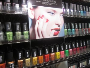 The goodies are all very reasonably priced – think R34,95 for a nail polish and R49,95 for an eye shadow quad. Having played with a couple of the goodies both at home (thanks Adele from Ogilvy!) and in store, I can tell you that I’m impressed with the variety of products (they have FOUR different types of lip gloss including a tingly one that actually does plump your pout) and huge shade selection.