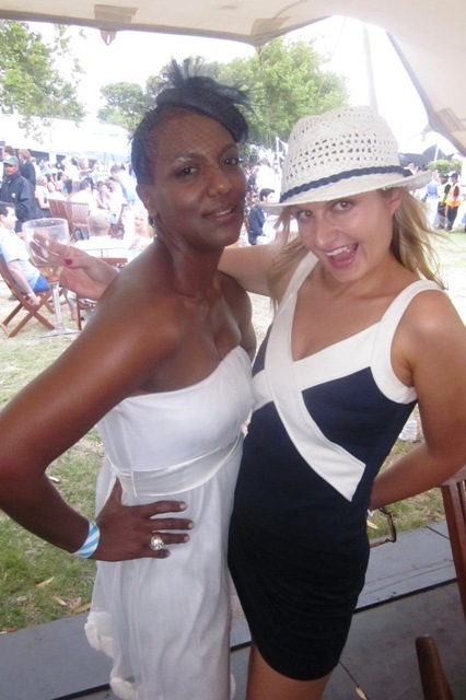 Elana Afrika was also out and about. She’s not wearing it in this piccie, but she was rocking a pretty little fascinator that won her 3rd place in the Best Hat competition. (Expresso presenter Kia Johnson came first, have no clue what she looks like so couldn’t stalk her for a shot).