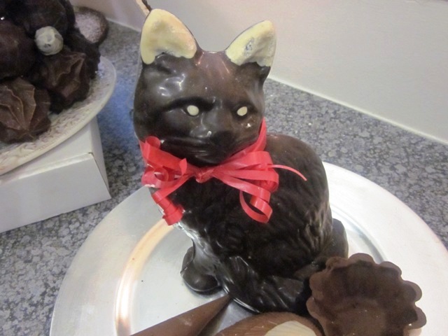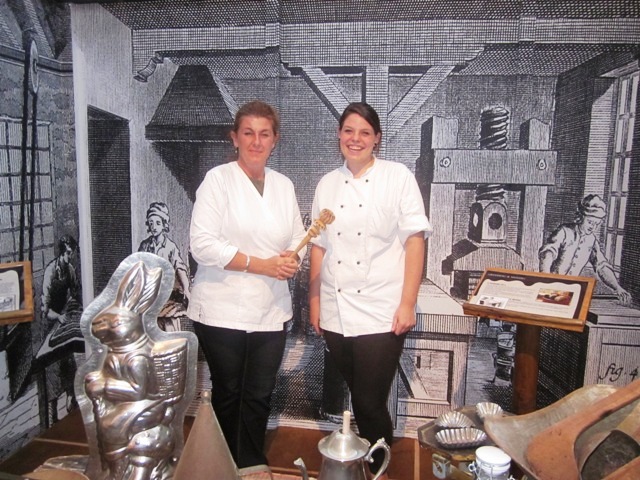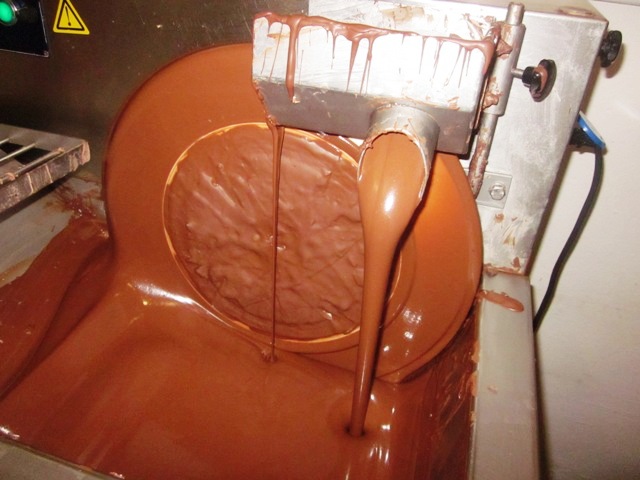 Fortunately, just when I thought I was going to black out in Rococoa’s mock tropical jungle display (amidst giant faux cocoa trees, nogal) we got whisked into the kitchen to taste an array of yummalicious choccie. Yay!