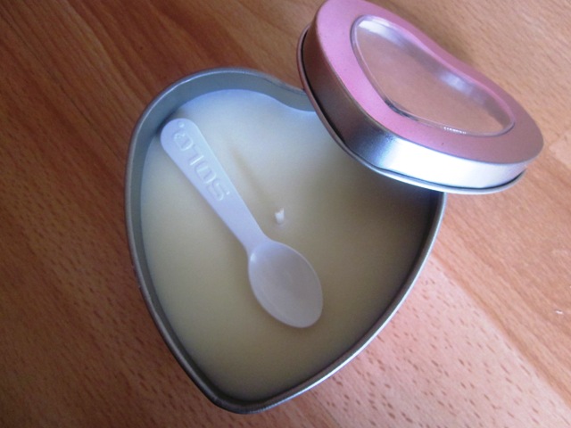 It's got a very faint musky scent and comes with a spoon so you can scoop up the wax and massage it onto your skin or drizzle it on your man 'Body of Evidence' style.