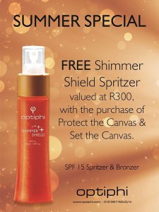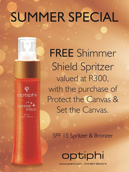 Award-winning local brand optiPhi have a hot little limited edition in their Shimmer Shield SPF15 (R300). Essentially, it’s a spray-on sun tanning/protection oil that’s enriched with mega moisturising jojoba. The best bit, however, is that it’s chocoblock of copper coloured shimmering pigments. Just LOOK at how pretty it is: