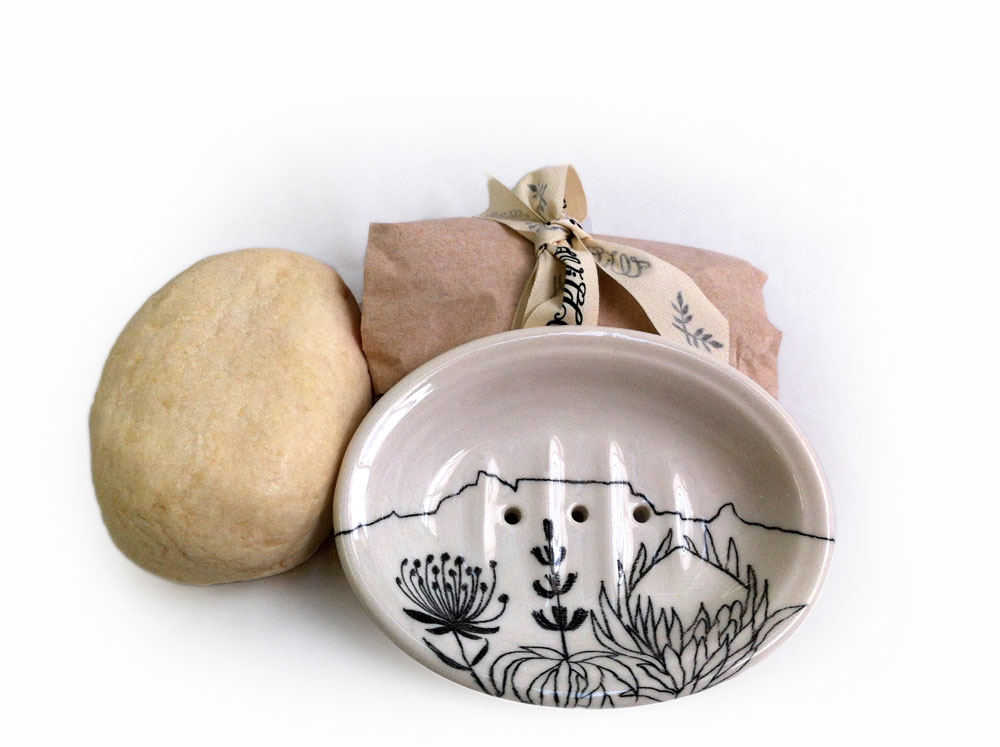 They all come packaged in handcrafted porcelain jars (while the soap comes with a dish) that features Table Mountain and local flora. There are two styles to choose from; one that features a handdrawn pencil sketch…