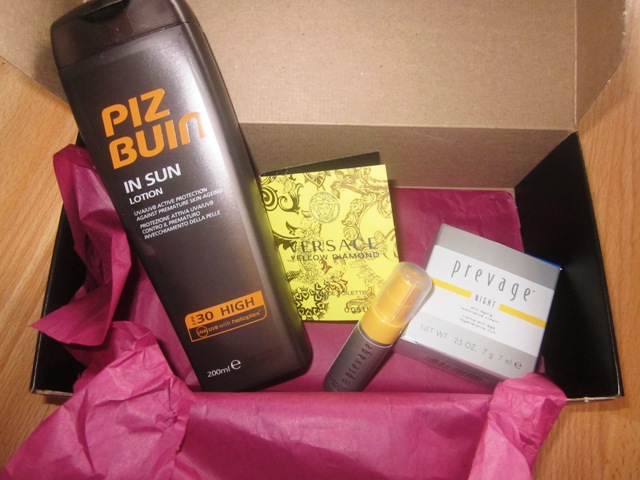 Aside from a full size Piz Buin In Sun lotion worth R180, you’ll also score very generous samples of Prevage Day and Night Anti-aging creams and a 1ml trial vial of Versace’s new Yellow Diamond fragrance.