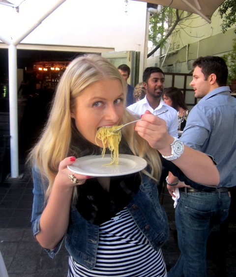 Clouds and I popped into the restaurant on the Saturday to join in a little party they threw to celebrate the menu’s launch. Vino and champers were flowing and guests were treated to tasting plates of many of the new dishes. Of everything I got to try I was most impressed with the Canderli/dumplings in broth (R45), saffron risotto (this is served with the Osso Bucco a la Milanese, R130) and homemade espresso-flavoured gelato (R15).