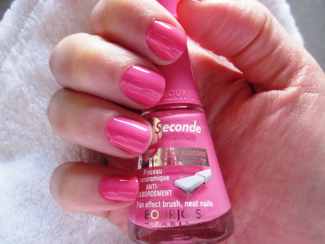 There are quite a few nail polishes with super-fast fan-style brushes on the shelves but I’ve been disappointed with the majority of what I’ve tried. So far, Bourjois is definitely the best of the bunch. In fact, I’d say it sets the bar in that it really really does make for a speedy application.