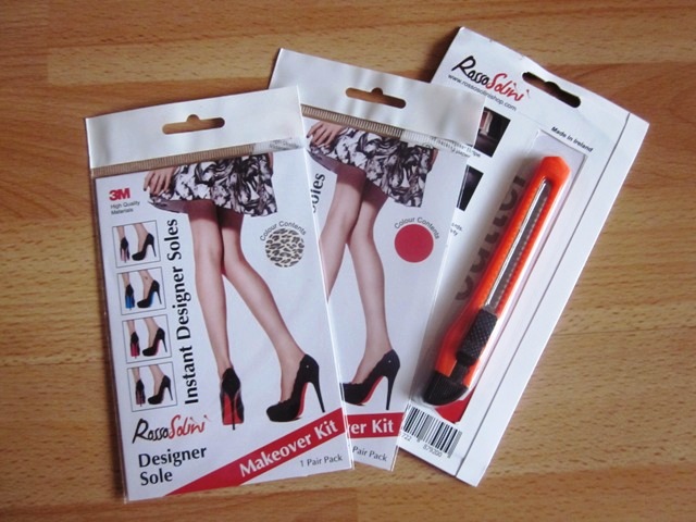 They were kind enough to send a set of red soles, another in leopard print and then one more red kit that includes an NT cutter.