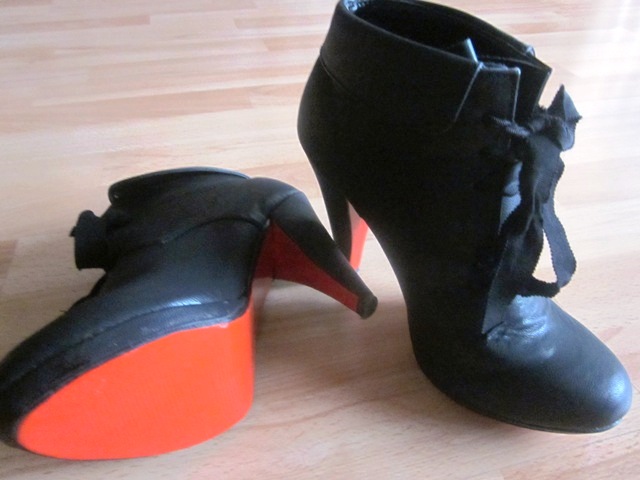 I decided to use the red sole kit to jazz up a pair of leather Woolies’ ankle booties: