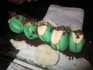 The best bit? It was served with the most revolting-sounding yet absurdly delicious macaroon ever. It had a strong apple flavour and the creamy bit inside was sweet yet salty thanks to the infusion of… wait for it… bacon! Yes, you heard me… a bacon and apple macaroon!