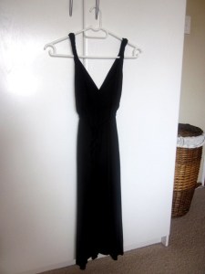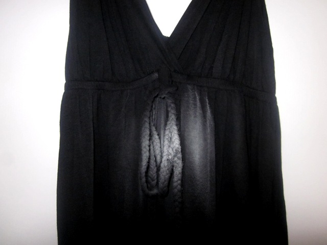 To put it to trial, I decided to use my little black rokkie as my ‘test monkey’. Thus, I hung it up, held the aerosol about five centimetres away and let rip with a nice, hard ‘psssssssst’. This is how I came to (temporarily) ruin my new dress: