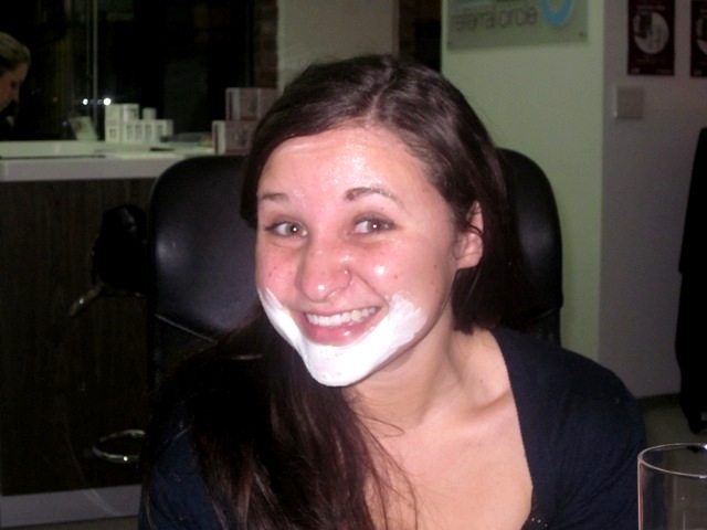 When it came to facial time, I played the diva bitch card and refused to take off my make-up as I’d had it done at a YOU photo shoot earlier in the day (I know, squeal, squeal! More deets on that later) and wanted to go home and show my boyfriend my new ‘I’m Totes a Soap Actress/related to Patricia Lewis’ look. Thing is, the day was so bloody long it had totally dissolved by the time I headed off so I now regret layering the products on my hands and opposed to my face ‘cos Clouds and Karis Piss clearly had so much fun: