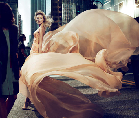 The floaty gorgeousness of this chiffon creation in the perfume’s print ad perfectly captures the sheer, luminous quality of the new scent.