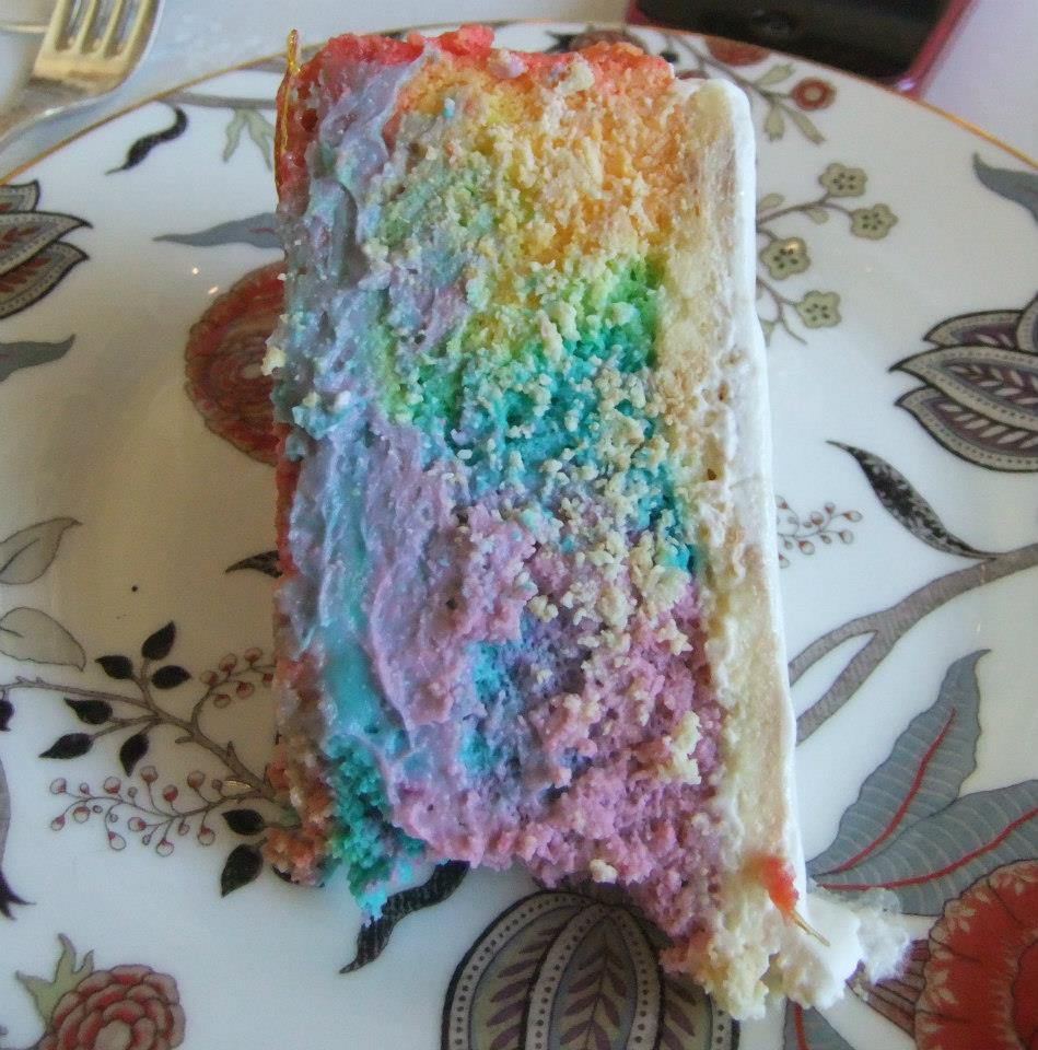 The rainbow nation cheesecake is bottom left in the above piccie. I just have to show you a close up of how it’s literally every colour of the rainbow when you cut into it: