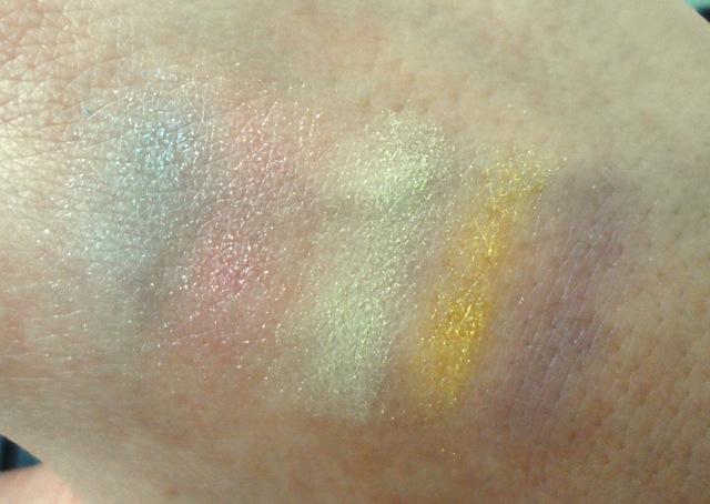 Ombres 5 Lumieres 13 (which reminds me of Easter eggs!) contains five pretty pastel shades that, despite being glitter-infused, look super sheer on your skin. In this way, they all make great highlighters to use either in the inner corner of your eye or on your brow bone.