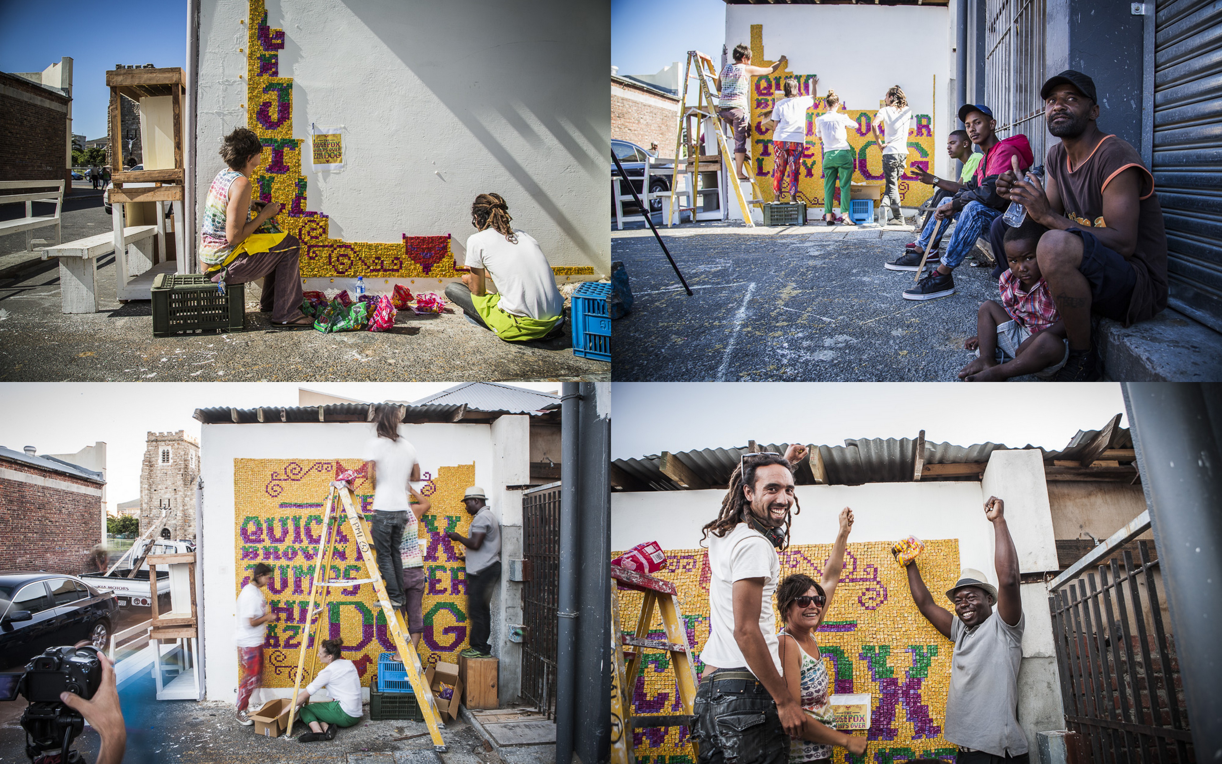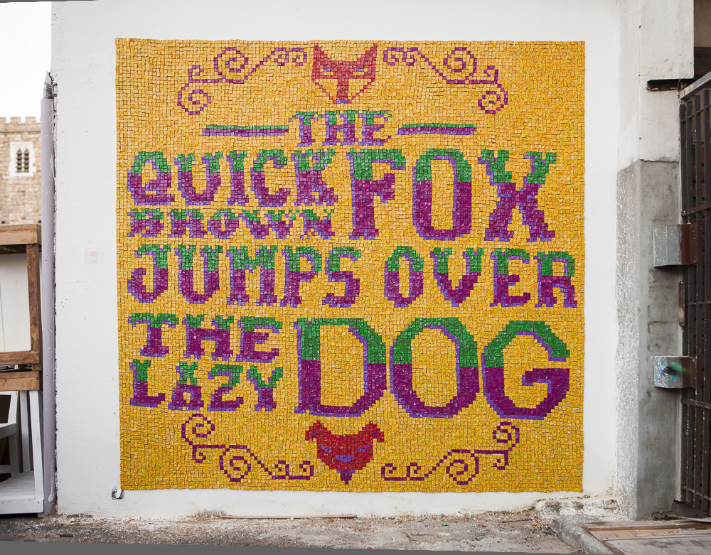 Anyway, to celebrate the fact that they’ve recently rolled out loads of new ‘Did You Know?’ wrapper facts all sourced from South African consumers, Chappies created a series of art installations made up of thousands of pieces of gum. These were stuck around various parts of Cape Town and I got invited to check out the one they put up in Woodstock.Desktop20Once up, the piece read ‘The quick brown fox jumps over the lazy dog’.