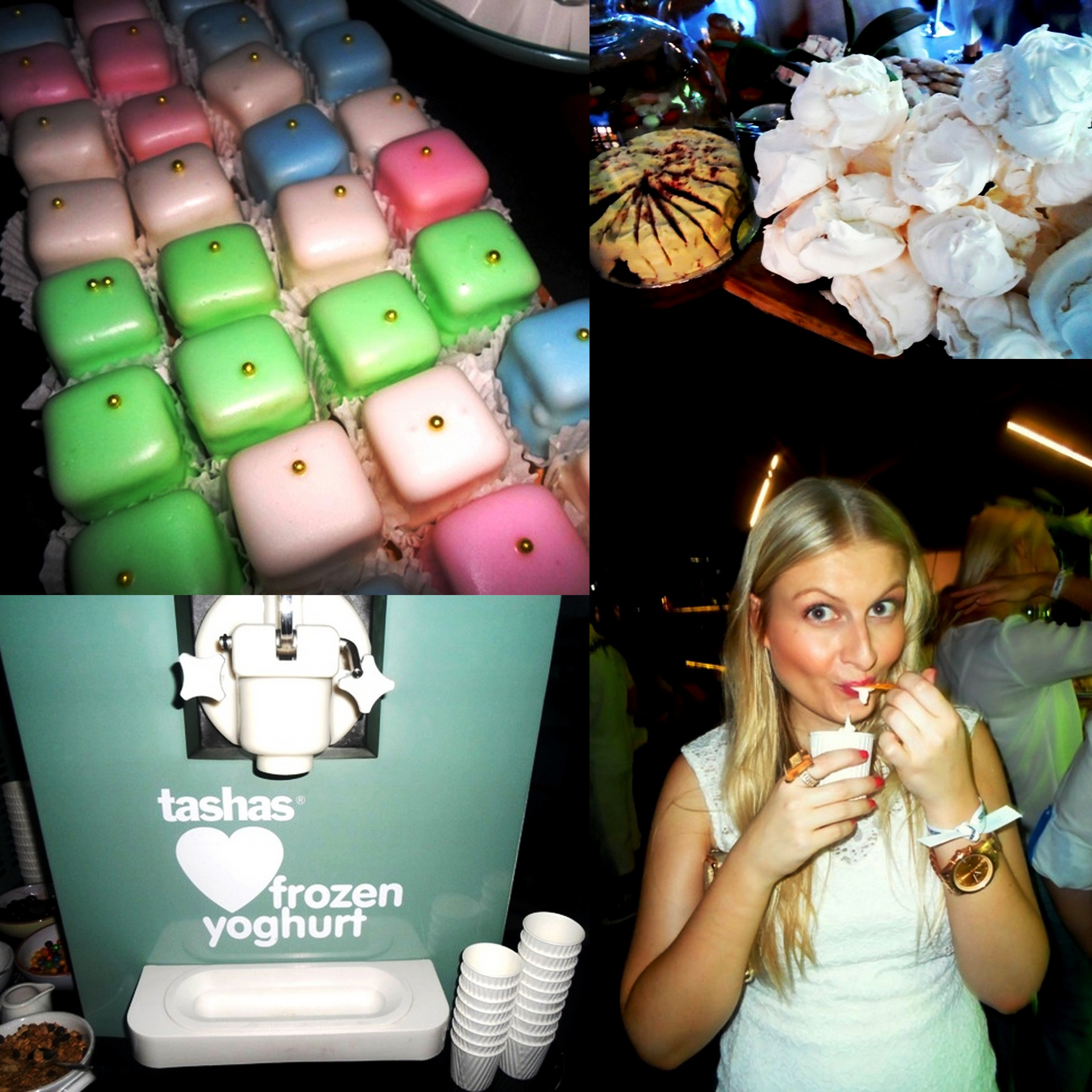 Anyway, Tasha’s big bash was held in a huge white marquee tent with several bars, a centre stage and mini lounge areas. Giant silver ice buckets of premium alcohol were dotted across the floor and tables groaned with mountains of delish-looking food.