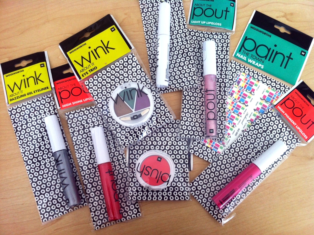 Woolworths has a brand new in-house make-up line in store. I’m not sure what to call it as it doesn’t seem to have a name but each item has the word ‘about’ in it’s title. I.e. ‘About The Pout High Pigment lipgloss and ‘Wink About It Eye Trio’.