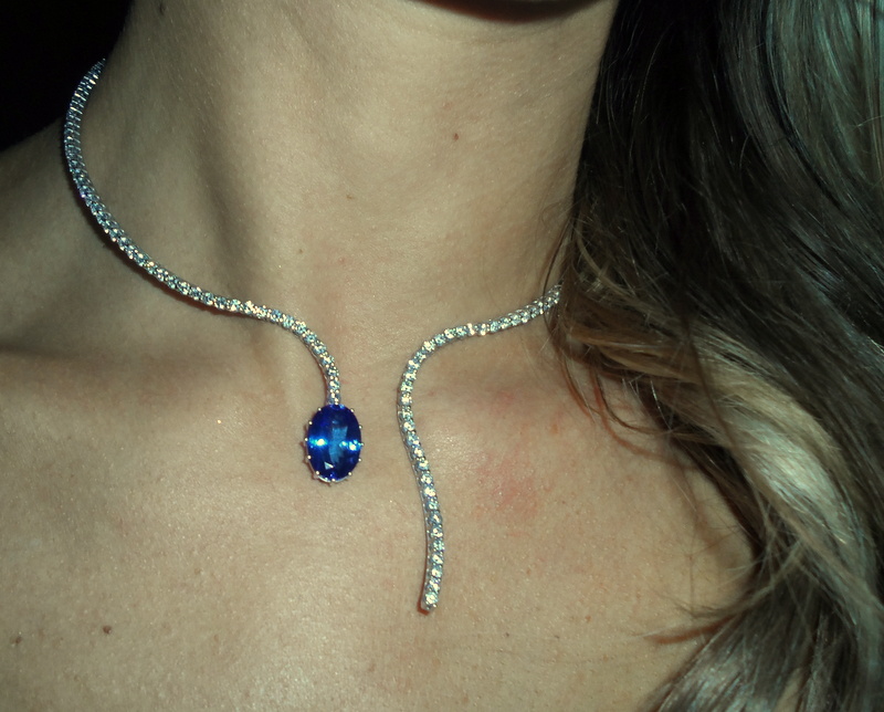 While B’s waist is about as big as my thigh but we can’t hate on her ‘cos she raised just over R570 000 for charity that night. Nice one, Brigitte, you freakin’ rock star. The gorgeous ‘heart of the ocean’-style necklace she wore also featured a rock of note and deserves its own shot.