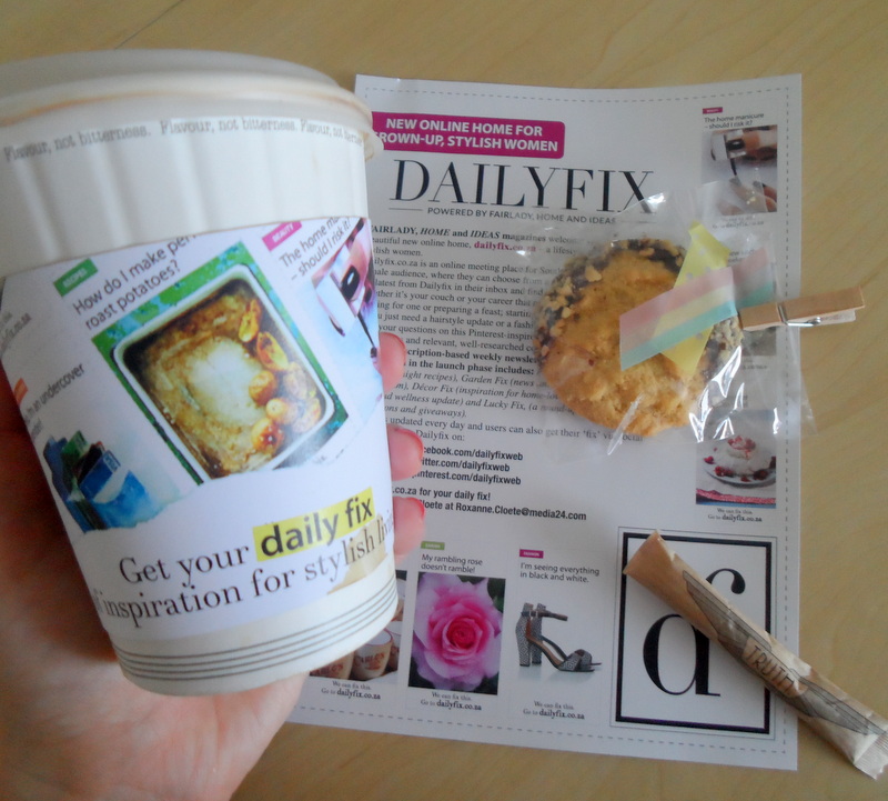 So my ou pel Roxanne who does some kind of media thing for Fairlady rocked up at my flat at the crack of dawn yesterday. Biets caught me in a vest and panties but she came bearing a free cup of piping hot Truth coffee so it was all good. That and a li’l cookie attached to a flyer announcing that Fairlady was now offering up a Dailyfix.
