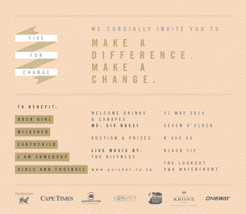 The event takes place at The Lookout in the V&A Waterfront on the 31st of this month (May 2014). Guests can expect welcome drinks, yummy canapes and the entertainment includes SA band The Kiffness. I’m also thrilled to see my old Perspectives building buddy/sort-of neighbour Siv Ngesi who also happens to be an actor and comedian, is going to be the evening’s MC.