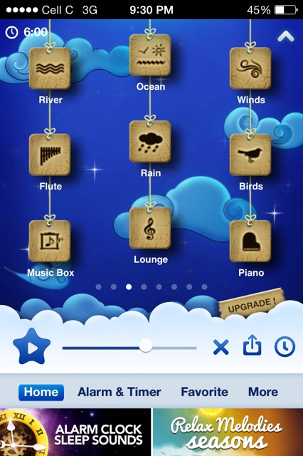 Anyway, if you’re keen to give it a bash, you’ll find it in the iStore. Just search for ‘Relax Melodies’. There’s an an oriental version of the app too. It features a clip called ‘Sushi bar’ which is also awesome. I used to be petrified of the dark as a child so I loved falling asleep to the sound of my uber-social folks having rocking dinner parties at night (they always made me feel ‘safe’) so now ‘people noise’ also kind of does it for me.