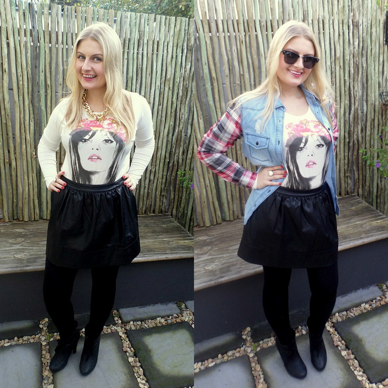 For example, let’s take a look at how we can dress up and then casual back down with this pleather skirt (R279,99) and printed long sleeve top (R199,95).