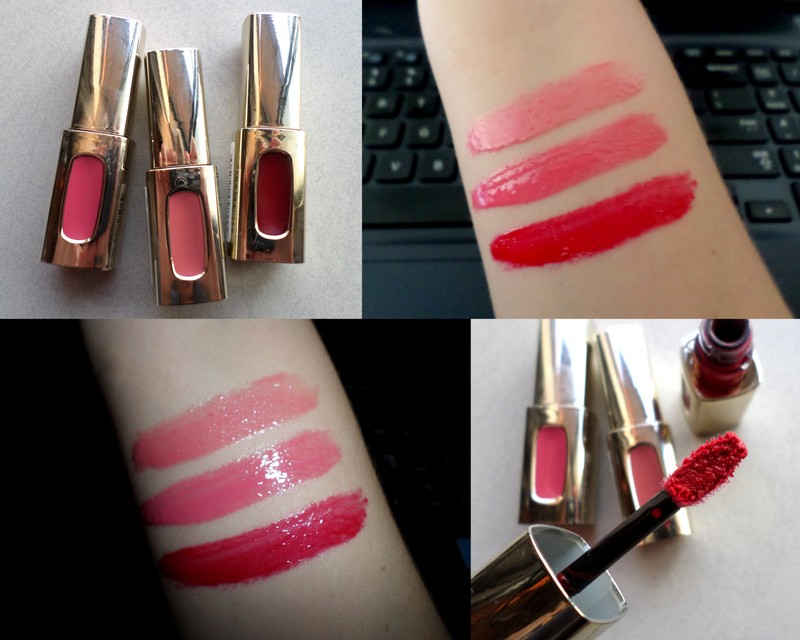 At first, I was tempted to draw comparisons between L’Oreal’s new liquid lipstick and YSL’s Rouge Pur Couture glossy stains but, while L’Oreal’s packaging echo’s YSL’s a little, the similarities stop there. L’Oreal’s lip colours don’t leave a stain in their wake and are also a lot more glossy – like a nicely pigmented lipgloss as opposed to a liquid lipstick. I also much prefer L’Oreal’s applicator – it’s not as wide and less tapered than YSL’s very diamond-shaped one.