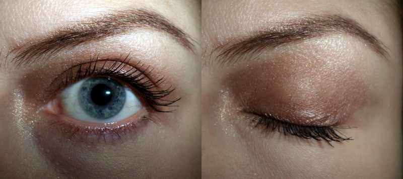 I used the shadows dry so they’ve gone on nice and light. If you wanted to intensify them, you could put down a primer or foundation first (this ensures more pigment sticks to your face) or use them wet. I wouldn’t recommend the latter though unless you’re a pro at blending. For the record, I’m wearing Bobbi Brown Party Eyes mascara (very nice stuff) and slapped on the shadow using my beloved MAC 217 eye shadow brush, AKA the best eye shadow brush ever.