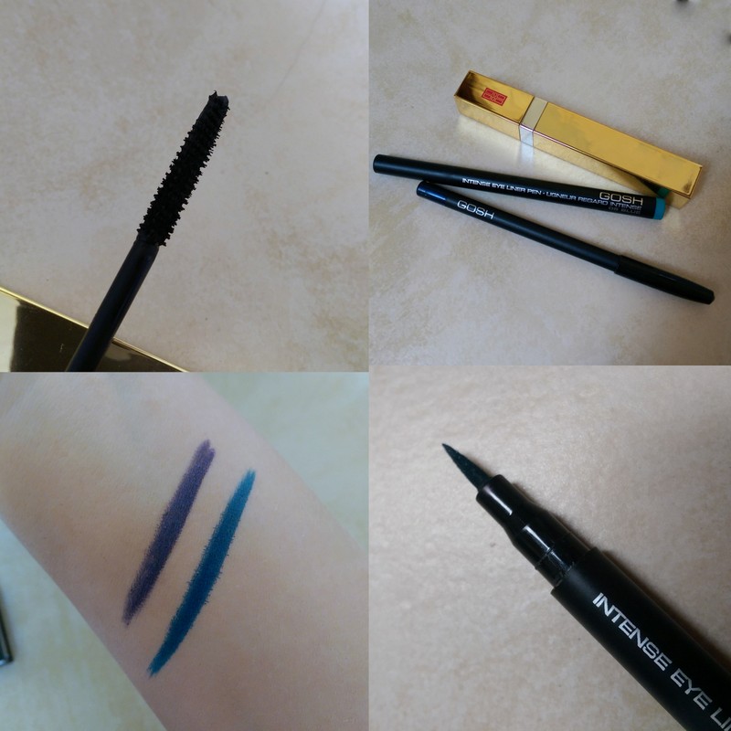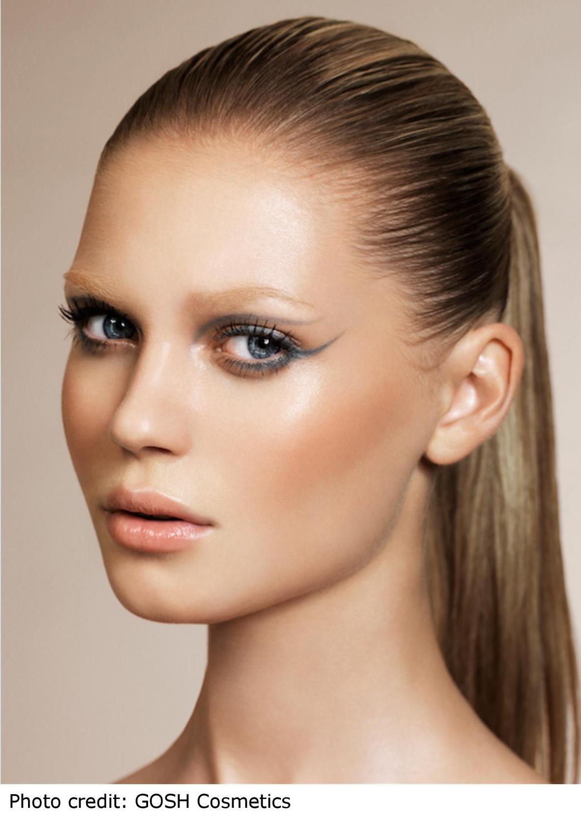 Now, lets talk about eyes – they’re the hero here. To create a similar look but without making a detour into crazy town, I started off with a wash of Revlon’s champagne-coloured shadow over my entire eyelid. Next, I slicked the GOSH blue eyeliner pen across my top lash line and flicked it out a little, starting with a thin line and then building more on top of that to create the appropriate ‘thickness’. I then used the GOSH eye pencil to line my waterline but kept it subtle. A very dark inner rim liner can enhance the look of dark under eye circles. To finish, all I had to do was add a few slicks of Arden’s mascara.