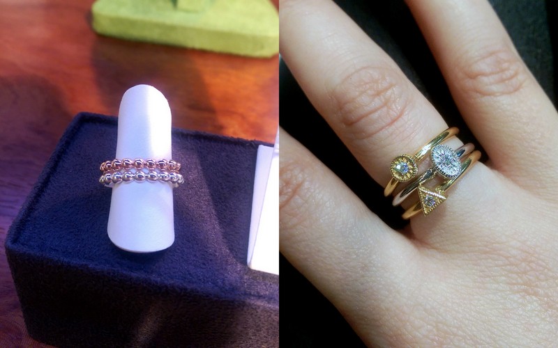 On the left: Round eternity ring R500. On the right: Diamond Stax rings, R1200 each.
