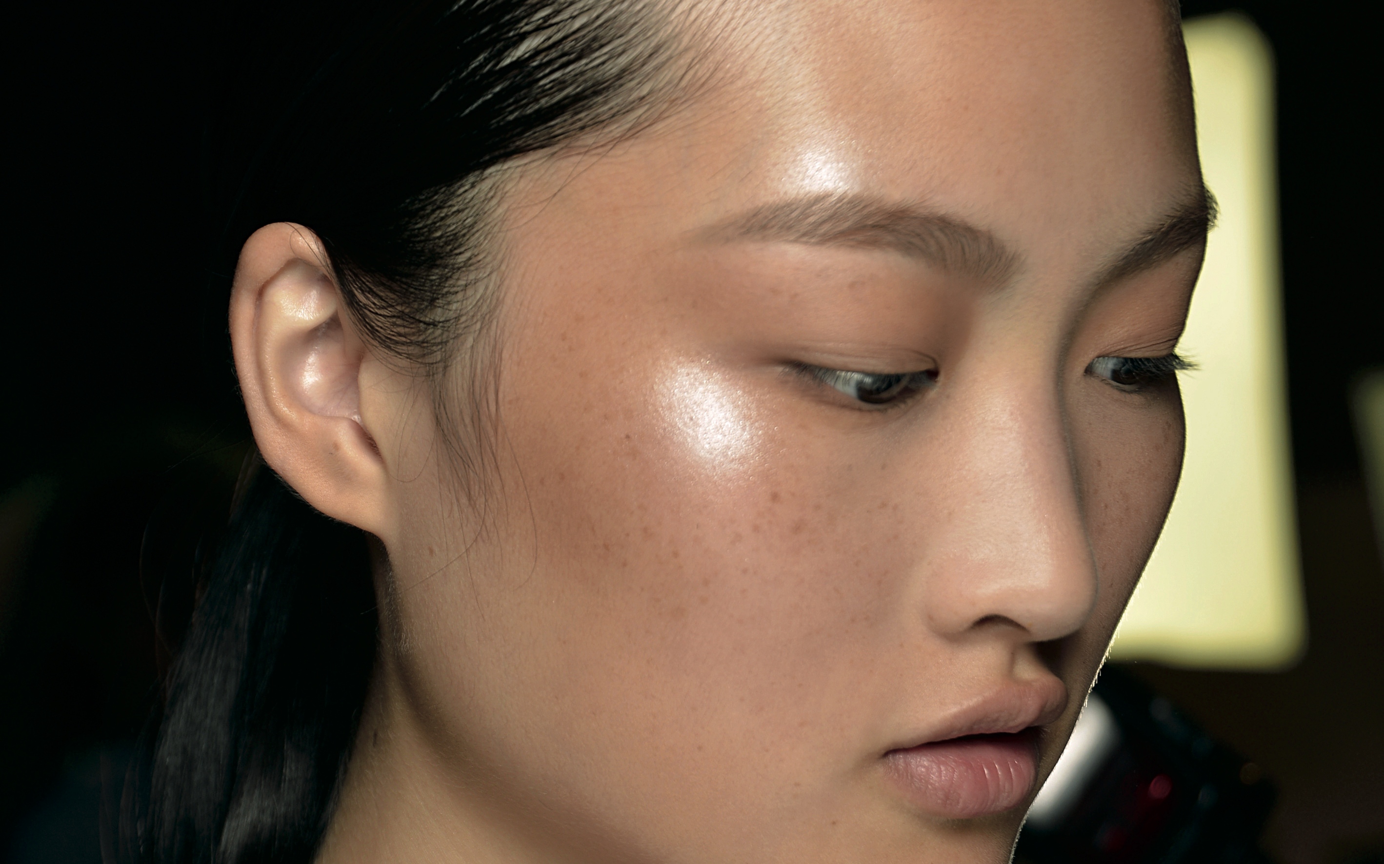 Michelle-Lee says that freckles are a total lust-have right now so if you’ve got them you better make sure you don’t mask them. No freckles? Use two different eye brow pencil shades to create them!