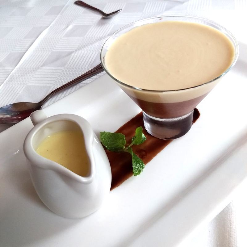 To finish up, we hit the dessert menu, trying the creme brulee (two thumbs up from Dax, I’m not a brulee meisie) and a duo-tone chocolate mousse made from both white and dark choc, the latter coming all the way from Belgium, with a creamy mint-infused vanilla sauce for drenching.