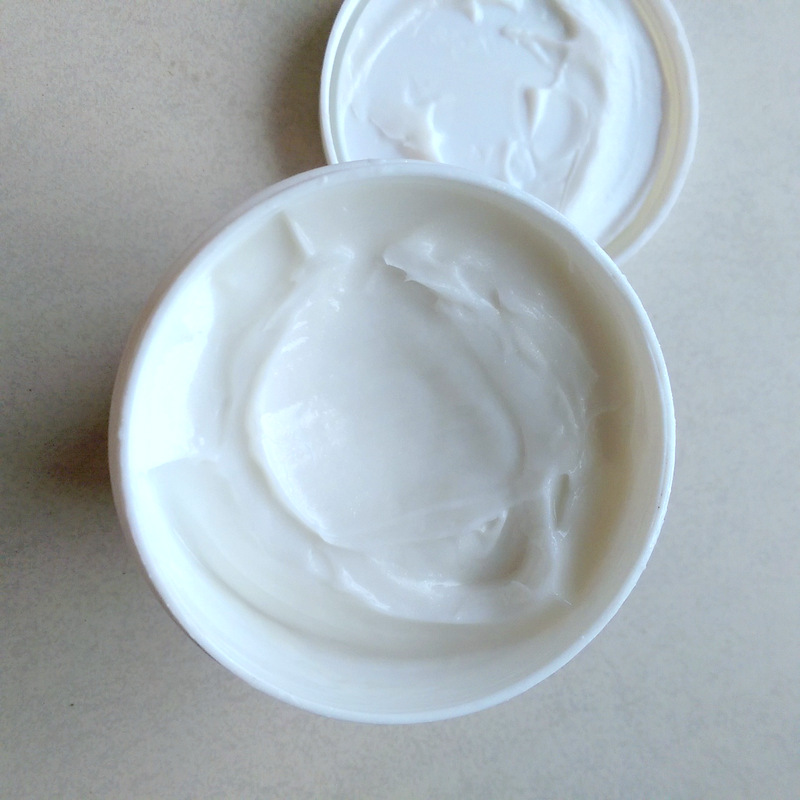 A glycerine and Shea butter-based medium weight gel-creme textured body cream, it’s got a very delicate fruity-floral scent disappears soon after application and contains microfine pearly-looking shimmer particles. (Don’t worry, fellow over 30s – these are visible in the tub, but almost imperceptible on your skin. You won’t be channeling Miley at a music festival.)