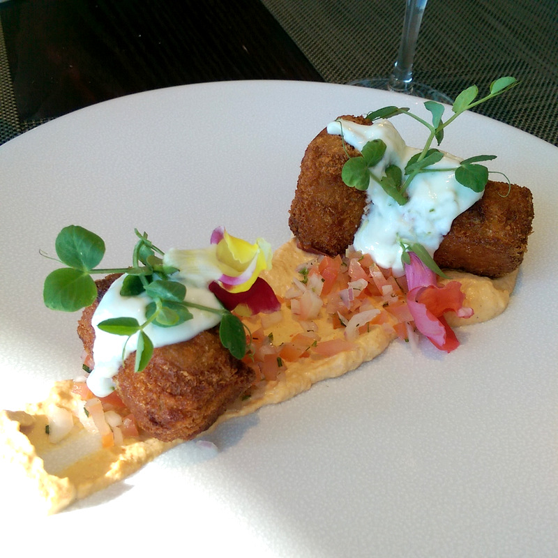 As for Gia, she picked the lamb and goats cheese fritters and declared them ‘yum’.
