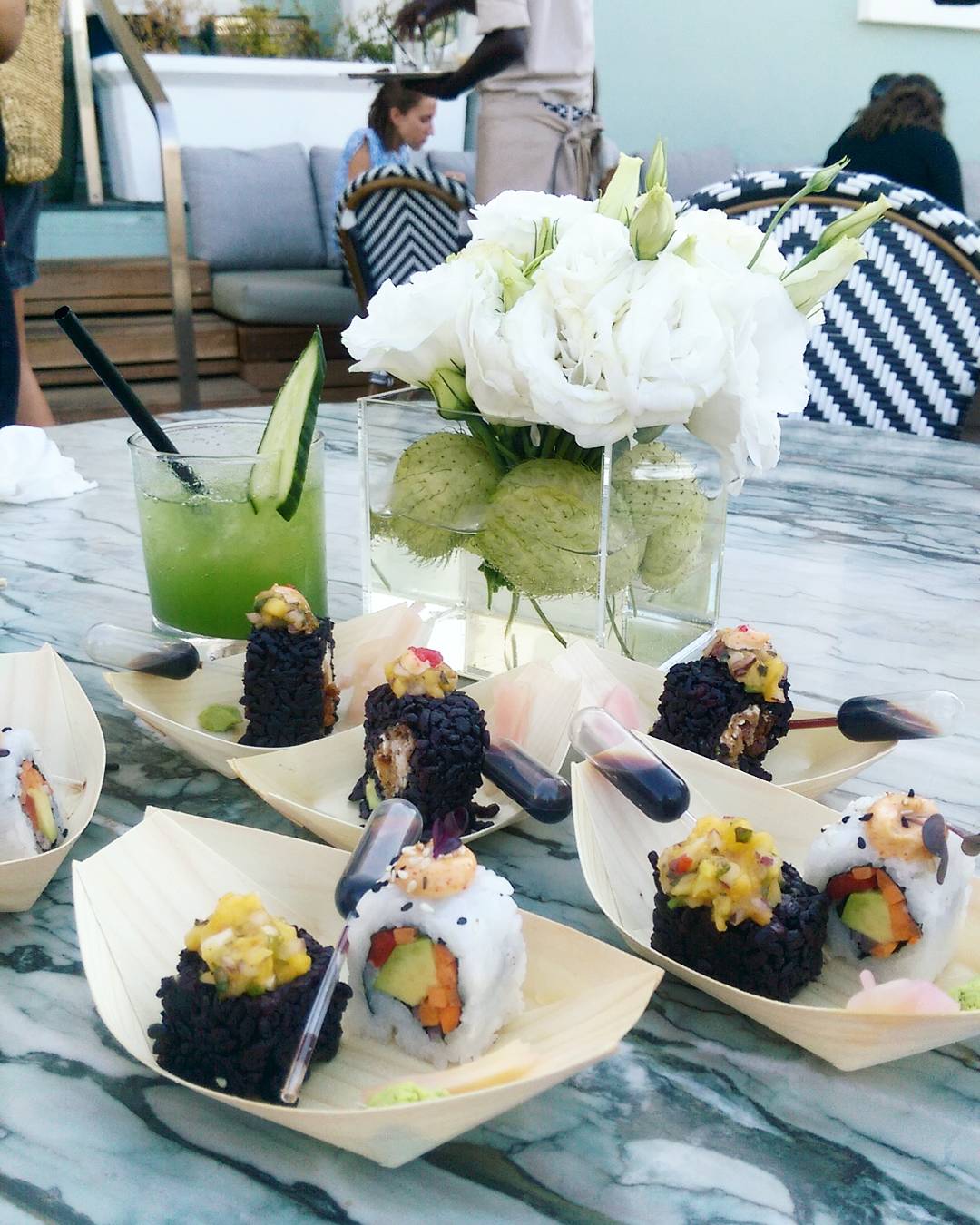Urban Decay recently held a launch to celebrate the fact that they’ve recently revamped their prep, prime and set collection. But first, can we take a moment for the event’s food? It was held at Life Grand Cafe and they served up the yummiest food including sushi made with BLACK rice.