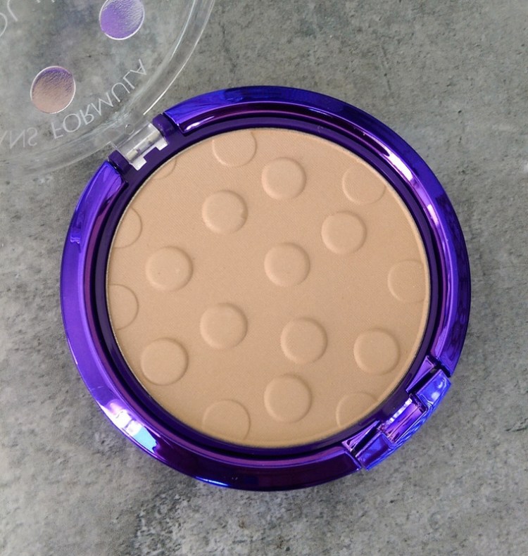In the piccie above I’m wearing Australian Gold, concealer under my eyes, brow powder, the Physician’s Formula Powder, blush, gloss and mascara. That’s it! Nothing else. (The highlight you’re seeing on my cheeks is from my blush – The Body Shop Baked-To-Last in Petal which has a shimmer to it. Believe me when I say you won’t get a strobe-effect from the Spotless Powder.)